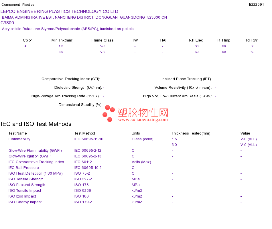 Acrylonitrile Butadiene Styrene/Polycarbonate (ABS/PC) C3800UL黄卡资料请登陆会员后查看,如需电子档资料,请联系客服! 赵生:手机13424755533;QQ:27660005