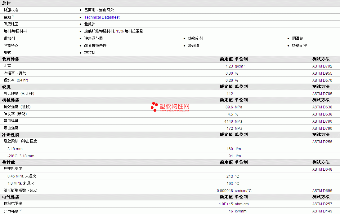 Elastoblend PA6 GF15 IM L物性表更多资料见下图