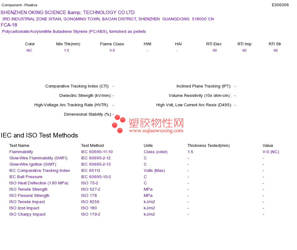 Polycarbonate/Acrylonitrile Butadiene Styrene (PC/ABS) FCA-18UL黄卡资料请登陆会员后查看,如需电子档资料,请联系客服! 赵生:手机13424755533;QQ:27660005