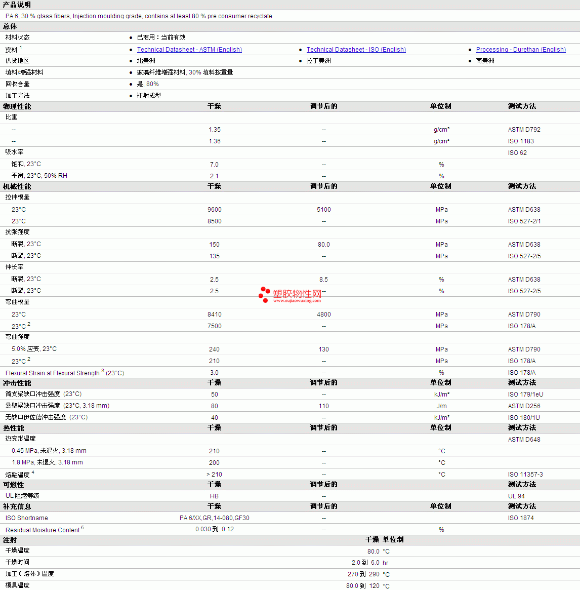 Durethan ECO PA GF30 909040物性表详情如图所示