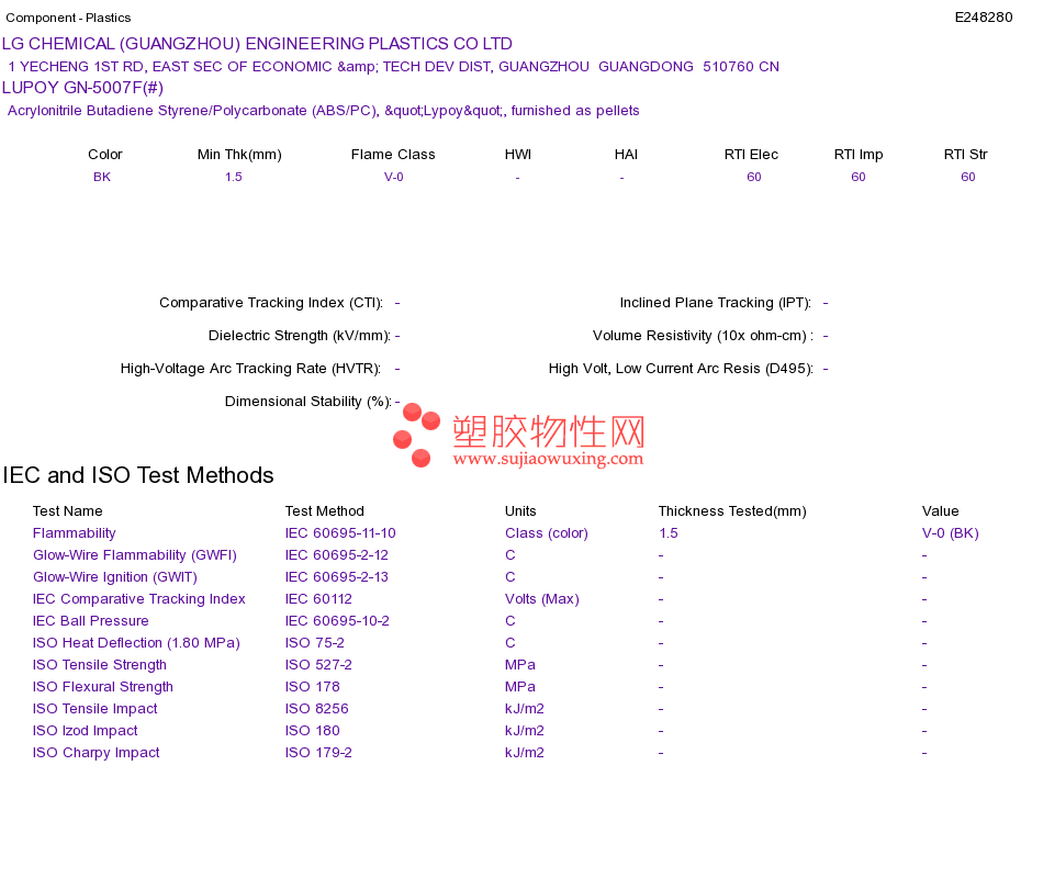 Acrylonitrile Butadiene Styrene/Polycarbonate (ABS/PC) LUPOY GN-5007F(#)UL黄卡资料请登陆会员后查看,如需电子档资料,请联系客服! 赵生:手机13424755533;QQ:27660005