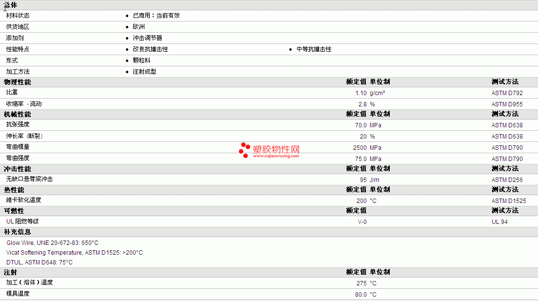 DINALON PA66 MEDIO IMPACTO物性表详细情况如图