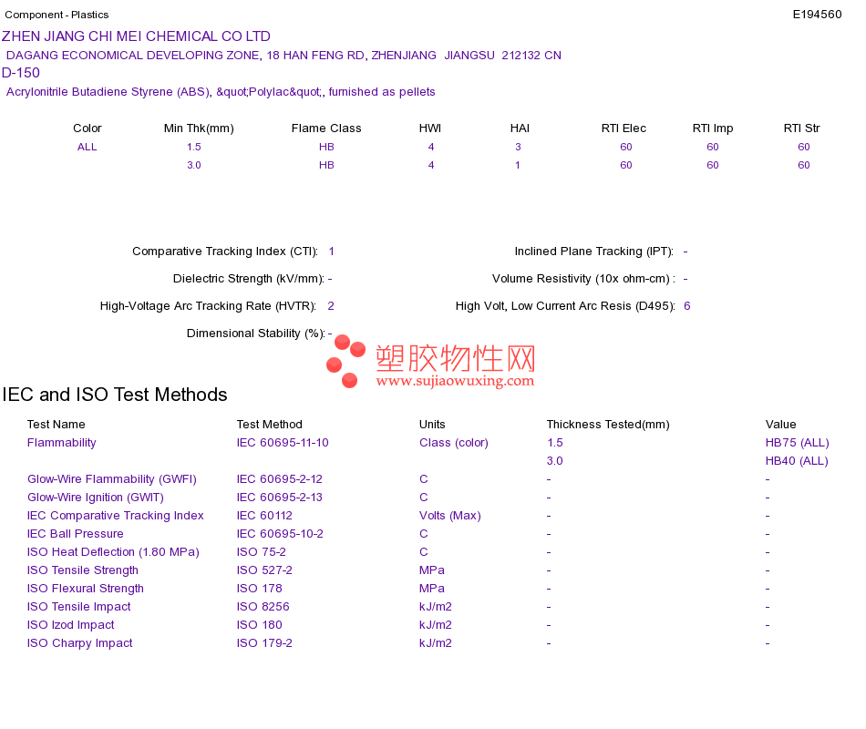 Acrylonitrile Butadiene Styrene (ABS) D-150UL黄卡资料请登陆会员后查看,如需电子档资料,请联系客服! 赵生:手机13424755533;QQ:27660005