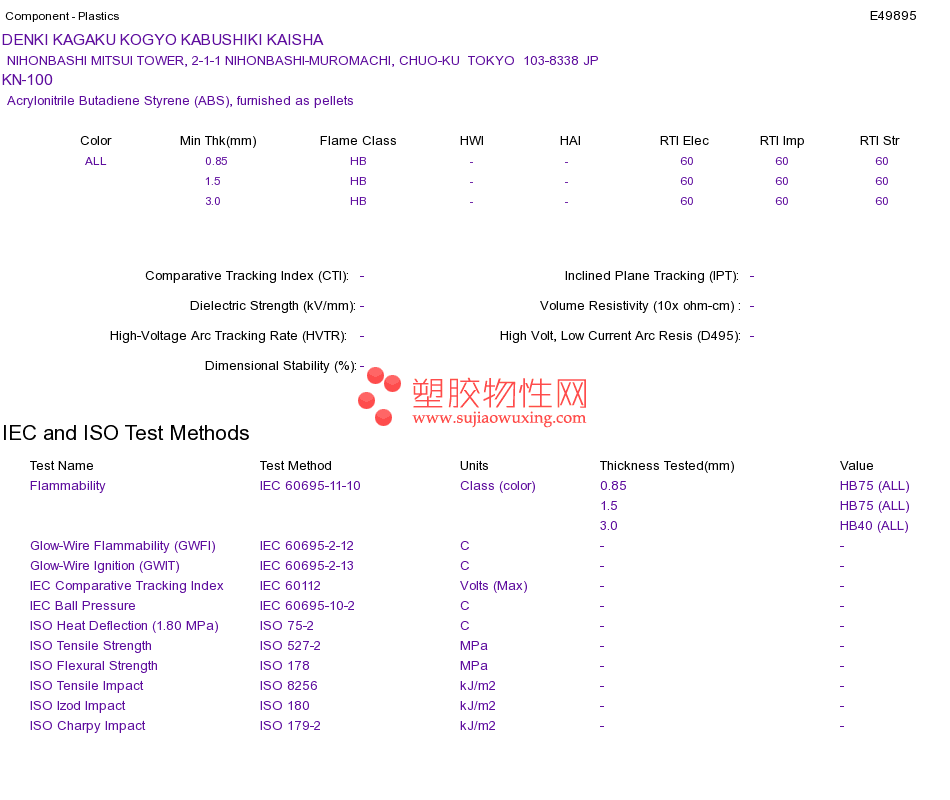 Acrylonitrile Butadiene Styrene (ABS) KN-100UL黄卡资料请登陆会员后查看,如需电子档资料,请联系客服! 赵生:手机13424755533;QQ:27660005