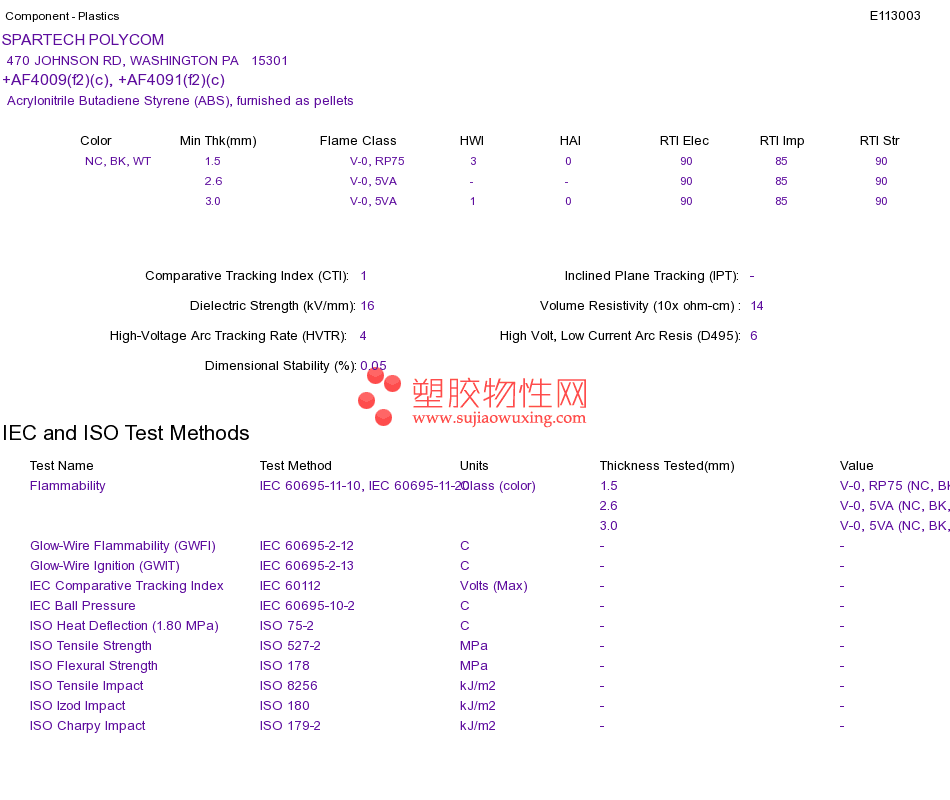 Acrylonitrile Butadiene Styrene (ABS) +AF4009(f2)(c), +AF4091(f2)(c)UL黄卡资料请登陆会员后查看,如需电子档资料,请联系客服! 赵生:手机13424755533;QQ:27660005
