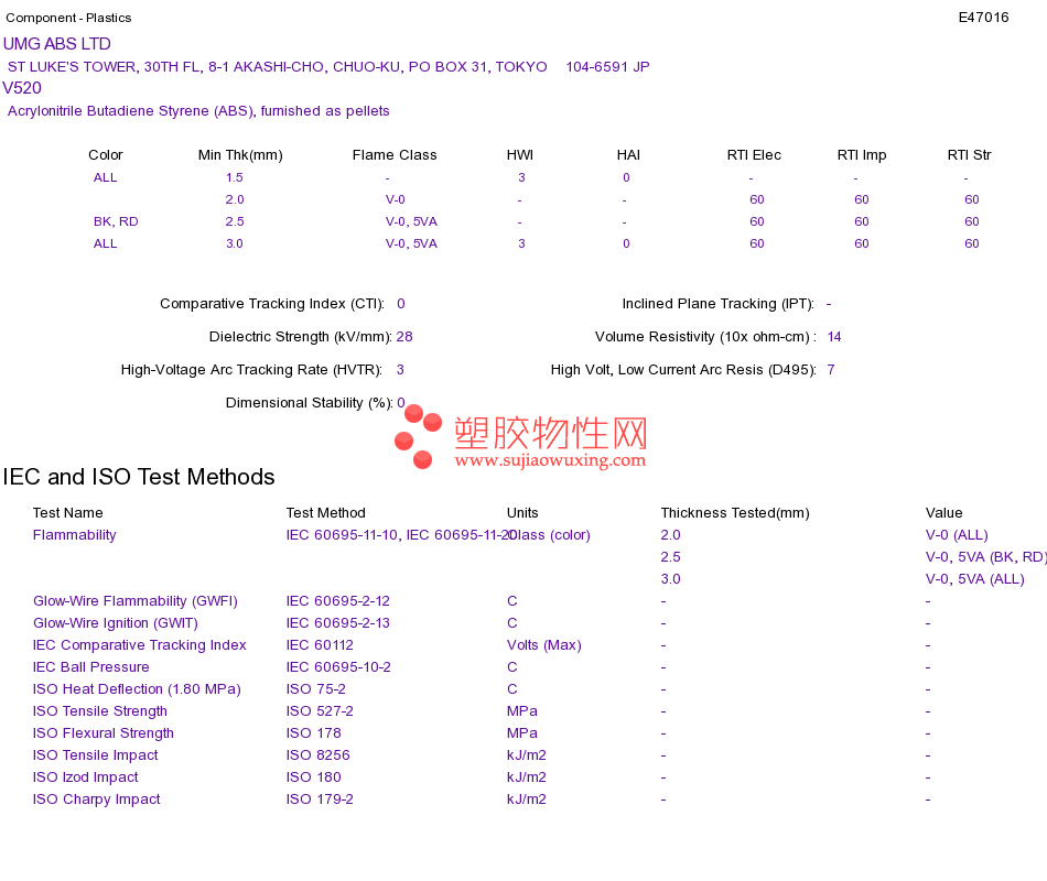 Acrylonitrile Butadiene Styrene (ABS) V520UL黄卡资料请登陆会员后查看,如需电子档资料,请联系客服! 赵生:手机13424755533;QQ:27660005