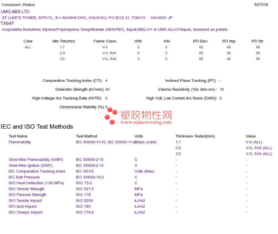 Acrylonitrile Butadiene Styrene/Polybutylene Terephthalate (ABS/PBT) TX64FUL黄卡资料请登陆会员后查看,如需电子档资料,请联系客服! 赵生:手机13424755533;QQ:27660005