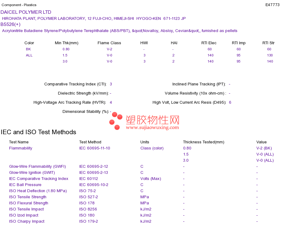 Acrylonitrile Butadiene Styrene/Polybutylene Terephthalate (ABS/PBT) B5526(+)UL黄卡资料请登陆会员后查看,如需电子档资料,请联系客服! 赵生:手机13424755533;QQ:27660005