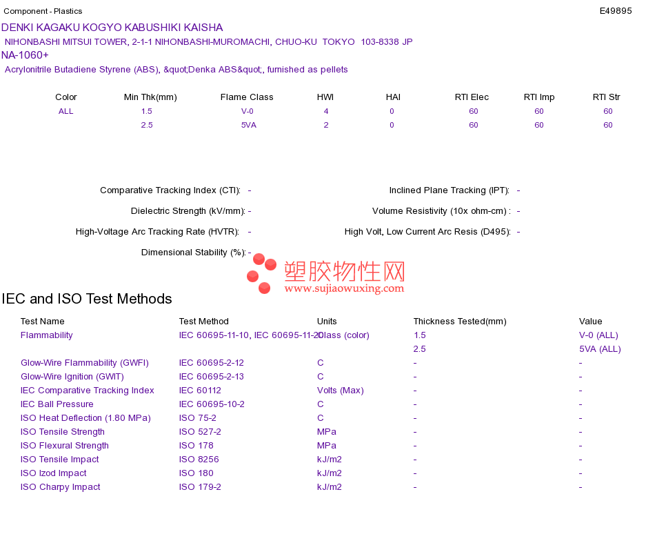 Acrylonitrile Butadiene Styrene (ABS) NA-1060+UL黄卡资料请登陆会员后查看,如需电子档资料,请联系客服! 赵生:手机13424755533;QQ:27660005