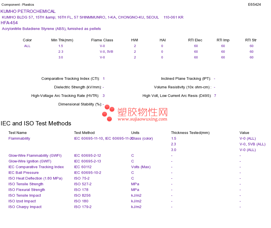 Acrylonitrile Butadiene Styrene (ABS) HFA-454UL黄卡资料请登陆会员后查看,如需电子档资料,请联系客服! 赵生:手机13424755533;QQ:27660005
