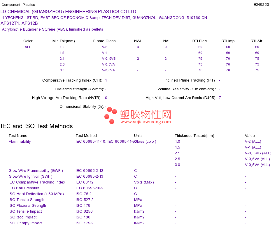 Acrylonitrile Butadiene Styrene (ABS) AF312T1, AF312BUL黄卡资料请登陆会员后查看,如需电子档资料,请联系客服! 赵生:手机13424755533;QQ:27660005