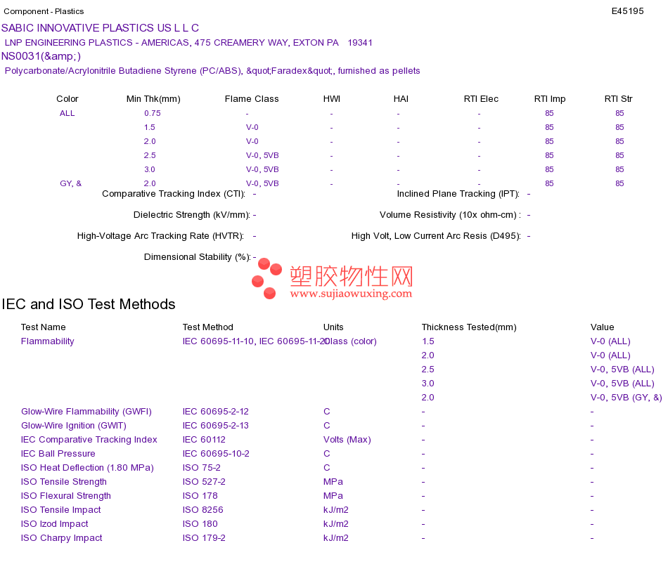 Polycarbonate/Acrylonitrile Butadiene Styrene (PC/ABS) NS0031(&)UL黄卡资料请登陆会员后查看,如需电子档资料,请联系客服! 赵生:手机13424755533;QQ:27660005