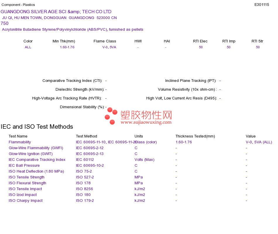 Acrylonitrile Butadiene Styrene/Polyvinylchloride (ABS/PVC) 750UL黄卡资料请登陆会员后查看,如需电子档资料,请联系客服! 赵生:手机13424755533;QQ:27660005