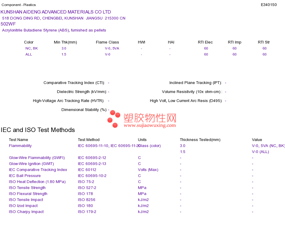 Acrylonitrile Butadiene Styrene (ABS) 502WFUL黄卡资料请登陆会员后查看,如需电子档资料,请联系客服! 赵生:手机13424755533;QQ:27660005