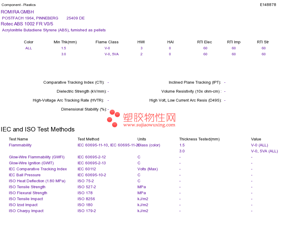 Acrylonitrile Butadiene Styrene (ABS) Rotec ABS 1002 FR V0/5UL黄卡资料请登陆会员后查看,如需电子档资料,请联系客服! 赵生:手机13424755533;QQ:27660005
