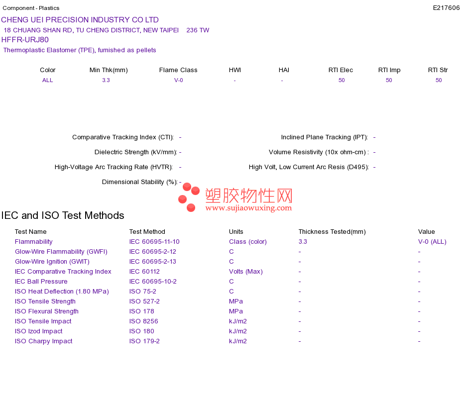 Thermoplastic Elastomer (TPE) HFFR-URJ80UL黄卡资料请登陆会员后查看,如需电子档资料,请联系客服! 赵生:手机13424755533;QQ:27660005