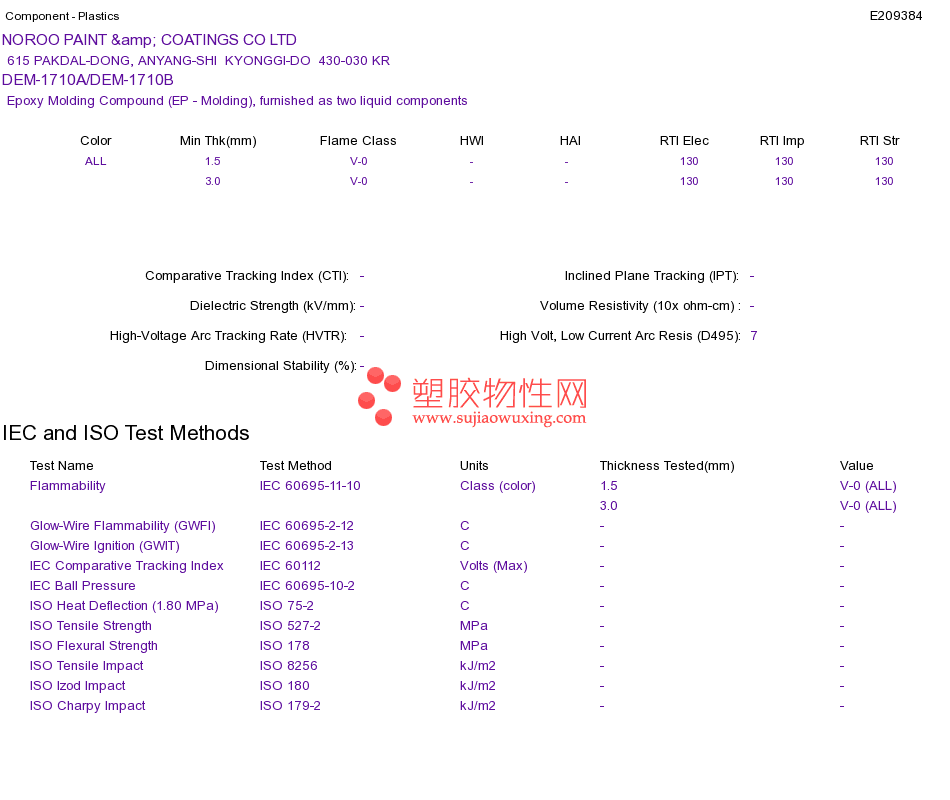 Epoxy Molding Compound (EP - Molding) DEM-1710A/DEM-1710BUL黄卡资料请登陆会员后查看,如需电子档资料,请联系客服! 赵生:手机13424755533;QQ:27660005