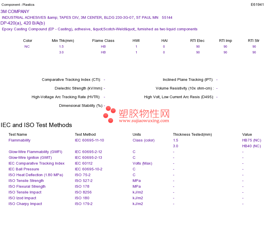 Epoxy Casting Compound (EP - Casting) DP-420(a), 420 B/A(b)UL黄卡资料请登陆会员后查看,如需电子档资料,请联系客服! 赵生:手机13424755533;QQ:27660005