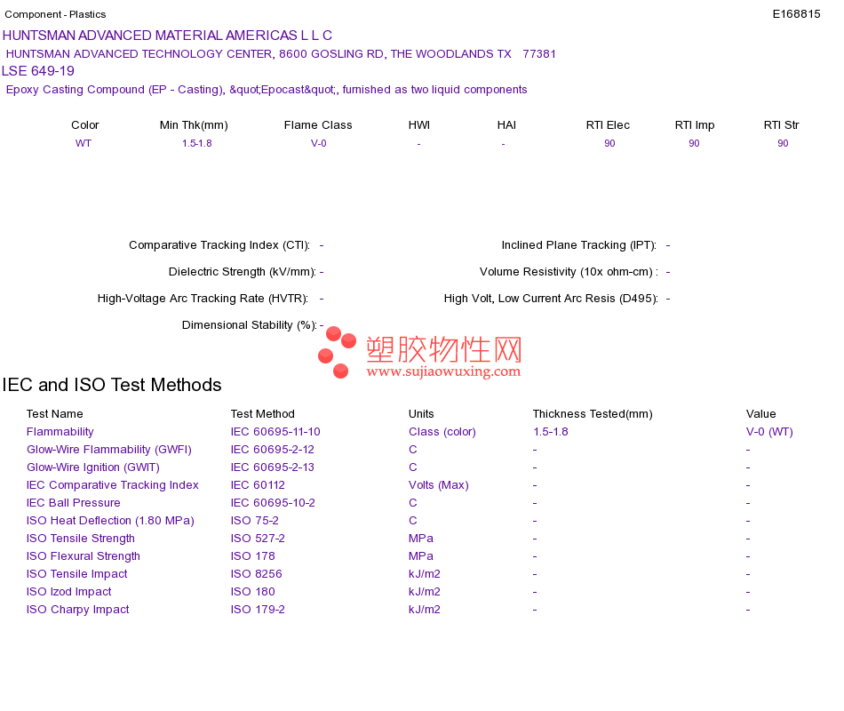 Epoxy Casting Compound (EP - Casting) LSE 649-19UL黄卡资料请登陆会员后查看,如需电子档资料,请联系客服! 赵生:手机13424755533;QQ:27660005