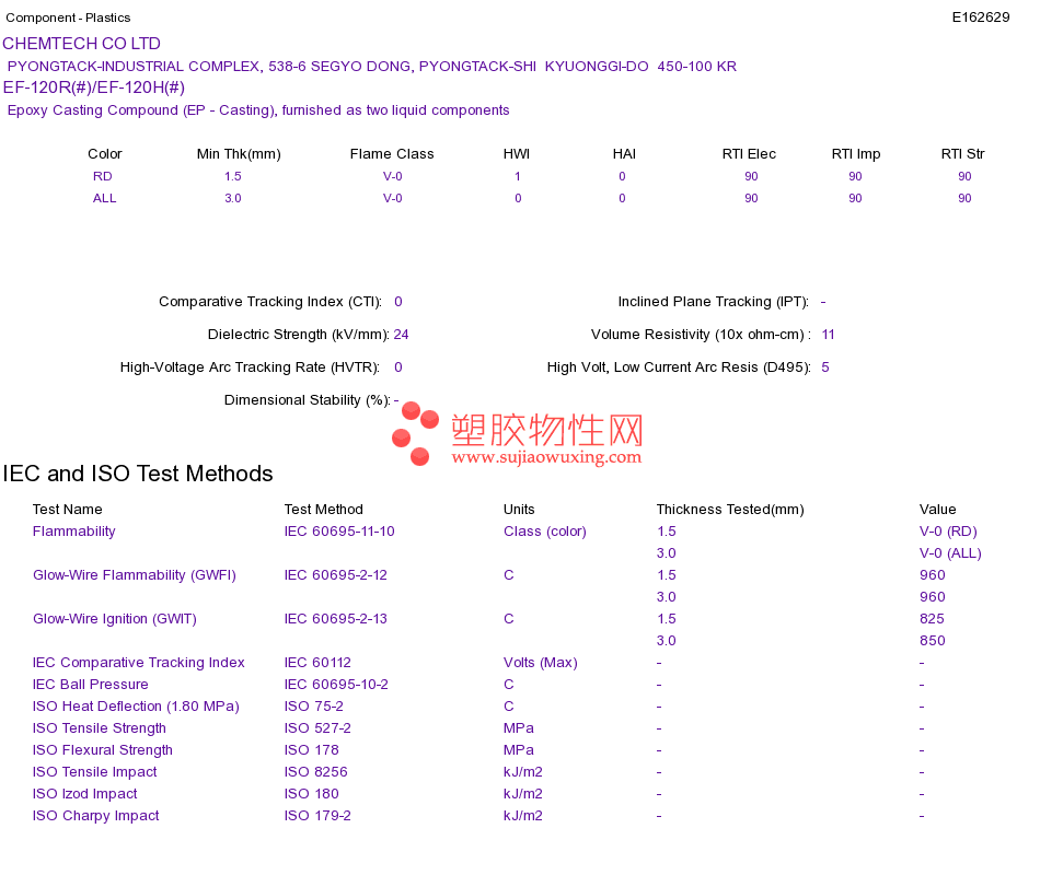 Epoxy Casting Compound (EP - Casting) EF-120R(#)/EF-120H(#)UL黄卡资料请登陆会员后查看,如需电子档资料,请联系客服! 赵生:手机13424755533;QQ:27660005
