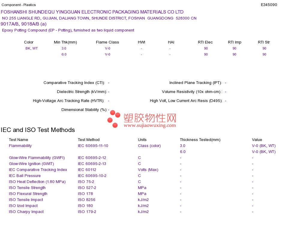 Epoxy Potting Compound (EP - Potting) 9017A/B, 9018A/B (a)UL黄卡资料请登陆会员后查看,如需电子档资料,请联系客服! 赵生:手机13424755533;QQ:27660005