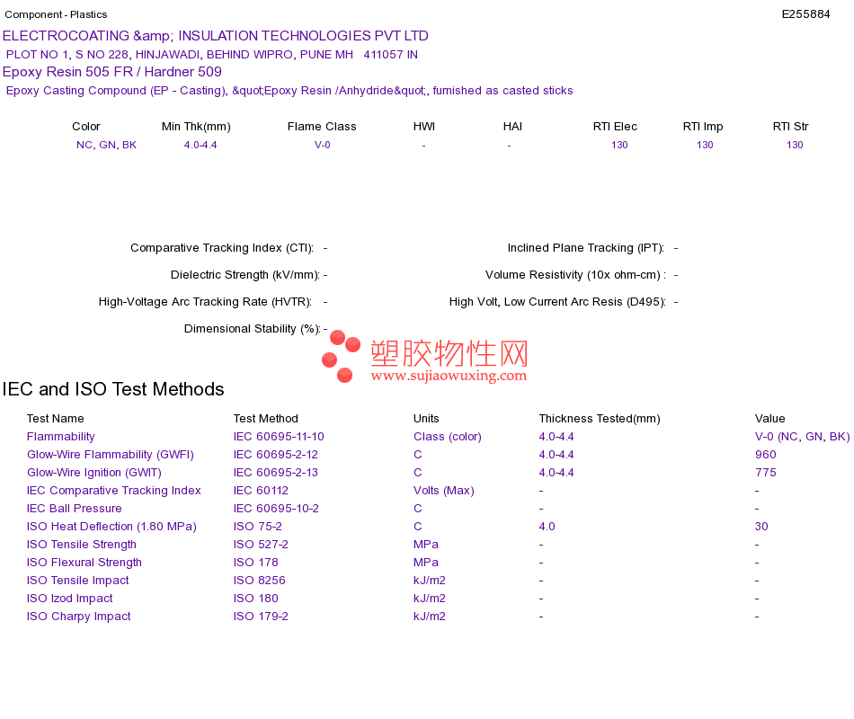 Epoxy Casting Compound (EP - Casting) Epoxy Resin 505 FR / Hardner 509UL黄卡资料请登陆会员后查看,如需电子档资料,请联系客服! 赵生:手机13424755533;QQ:27660005