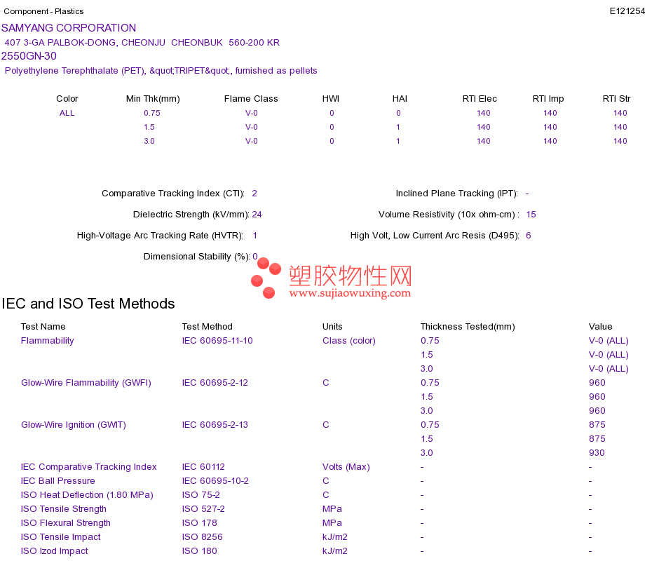 Polyethylene Terephthalate (PET) 2550GN-30UL黄卡资料请登陆会员后查看,如需电子档资料,请联系客服! 赵生:手机13424755533;QQ:27660005