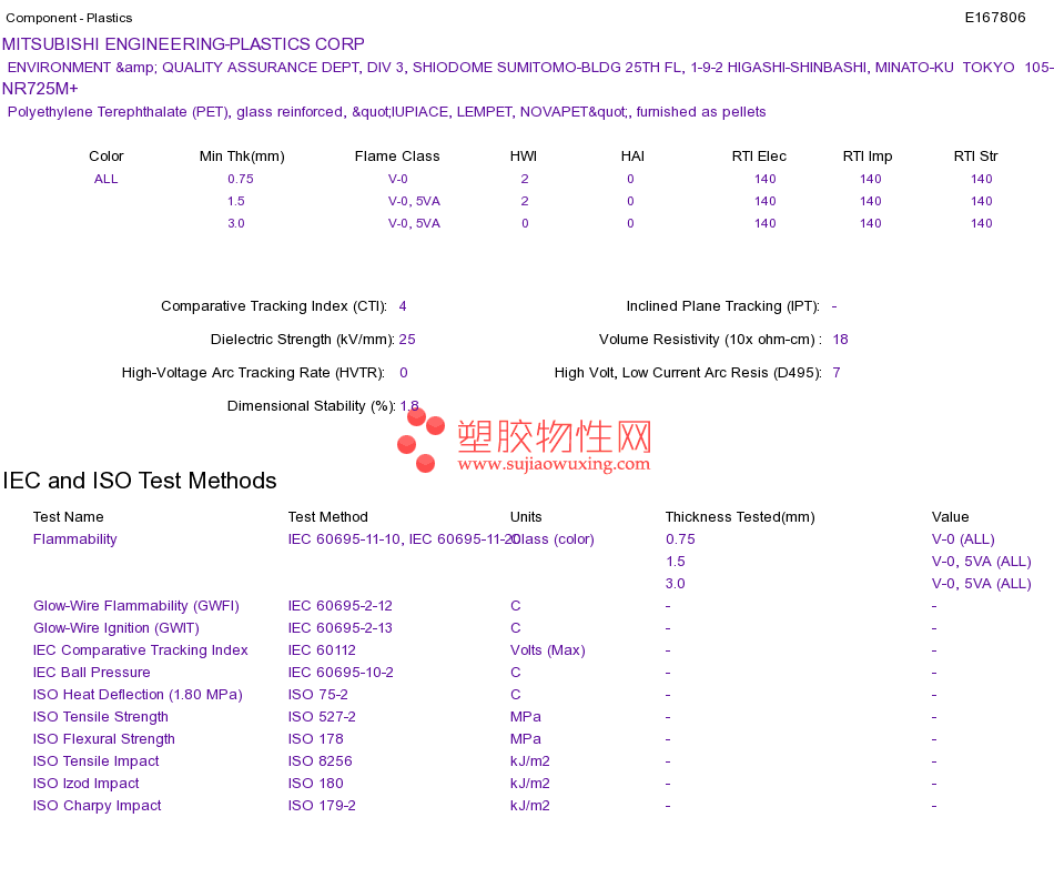 Polyethylene Terephthalate (PET) NR725M+UL黄卡资料请登陆会员后查看,如需电子档资料,请联系客服! 赵生:手机13424755533;QQ:27660005