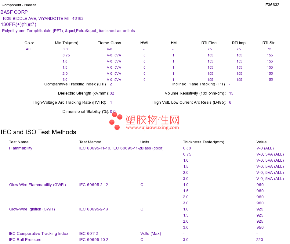 Polyethylene Terephthalate (PET) 130FR(+)(f1)(t7)UL黄卡资料请登陆会员后查看,如需电子档资料,请联系客服! 赵生:手机13424755533;QQ:27660005