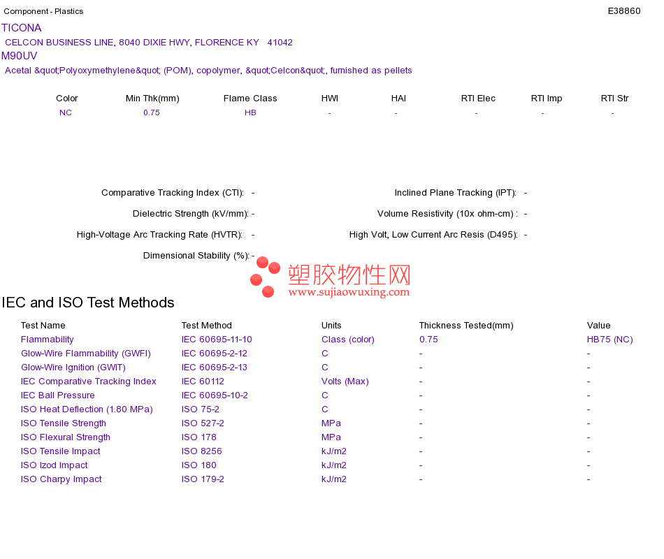 Acetal "Polyoxymethylene" (POM) M90UVUL黄卡资料请登陆会员后查看,如需电子档资料,请联系客服! 赵生:手机13424755533;QQ:27660005