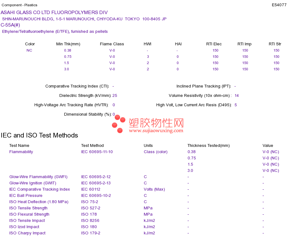 Ethylene/Tetrafluoroethylene (E/TFE) C-55A(#)UL黄卡资料请登陆会员后查看,如需电子档资料,请联系客服! 赵生:手机13424755533;QQ:27660005
