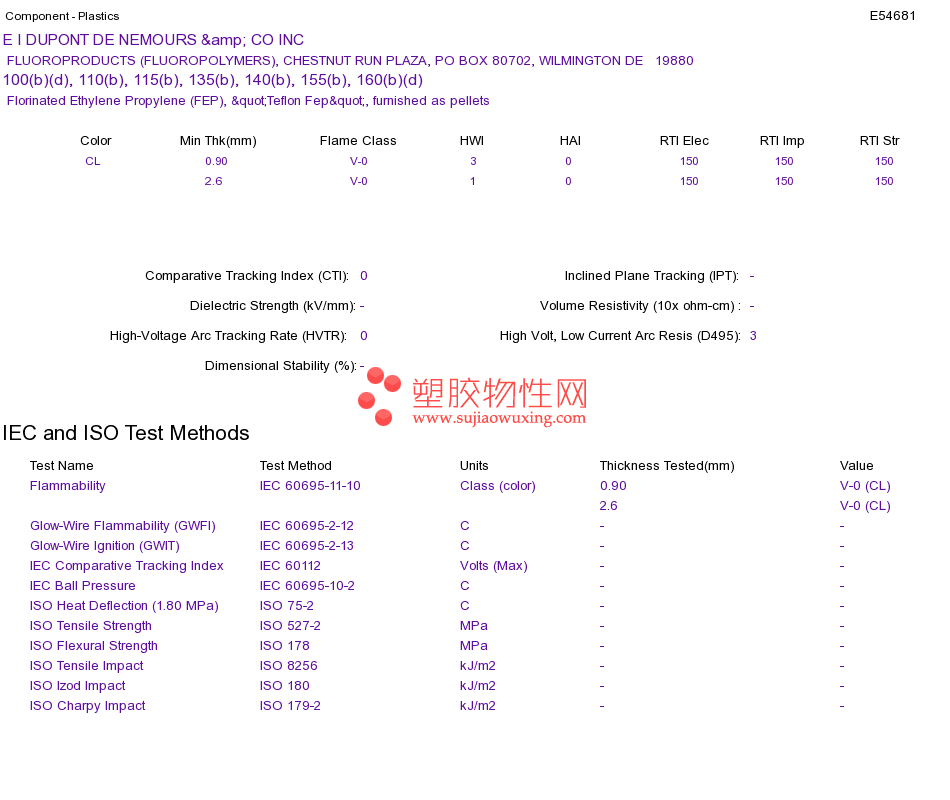 Florinated Ethylene Propylene (FEP) 100(b)(d), 110(b), 115(b), 135(b), 140(b), 155(b), 160(b)(d)UL黄卡资料请登陆会员后查看,如需电子档资料,请联系客服! 赵生:手机13424755533;QQ:27660005