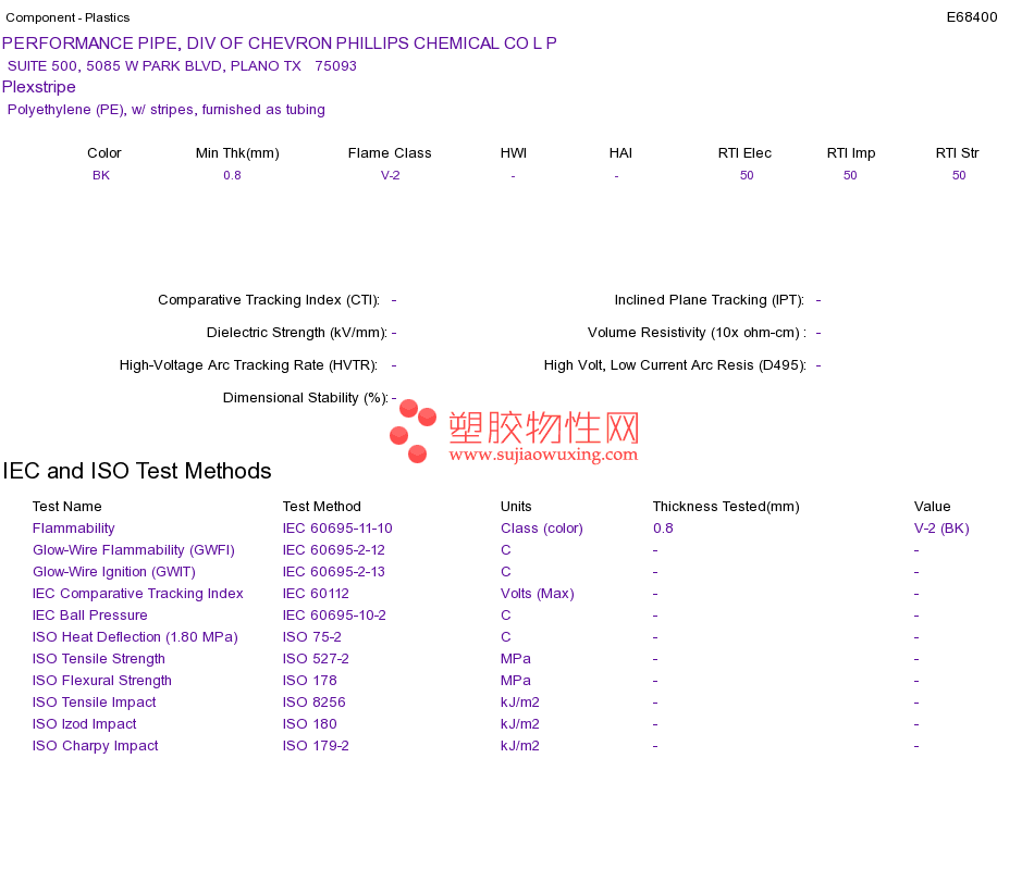 Polyethylene (PE) PlexstripeUL黄卡资料请登陆会员后查看,如需电子档资料,请联系客服! 赵生:手机13424755533;QQ:27660005