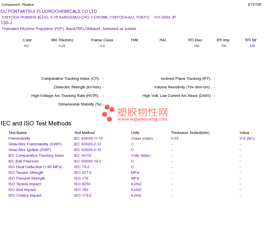 Florinated Ethylene Propylene (FEP) 130-JUL黄卡资料请登陆会员后查看,如需电子档资料,请联系客服! 赵生:手机13424755533;QQ:27660005