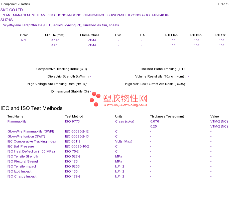 Polyethylene Terephthalate (PET) SH71SUL黄卡资料请登陆会员后查看,如需电子档资料,请联系客服! 赵生:手机13424755533;QQ:27660005