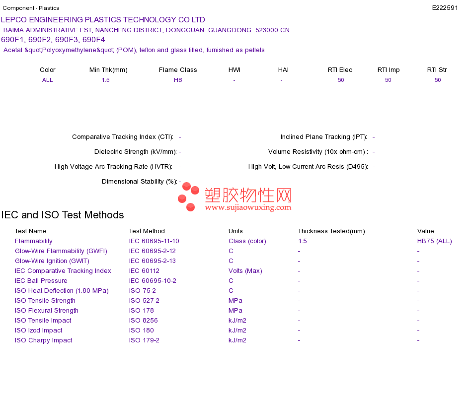 Acetal "Polyoxymethylene" (POM) 690F1, 690F2, 690F3, 690F4UL黄卡资料请登陆会员后查看,如需电子档资料,请联系客服! 赵生:手机13424755533;QQ:27660005