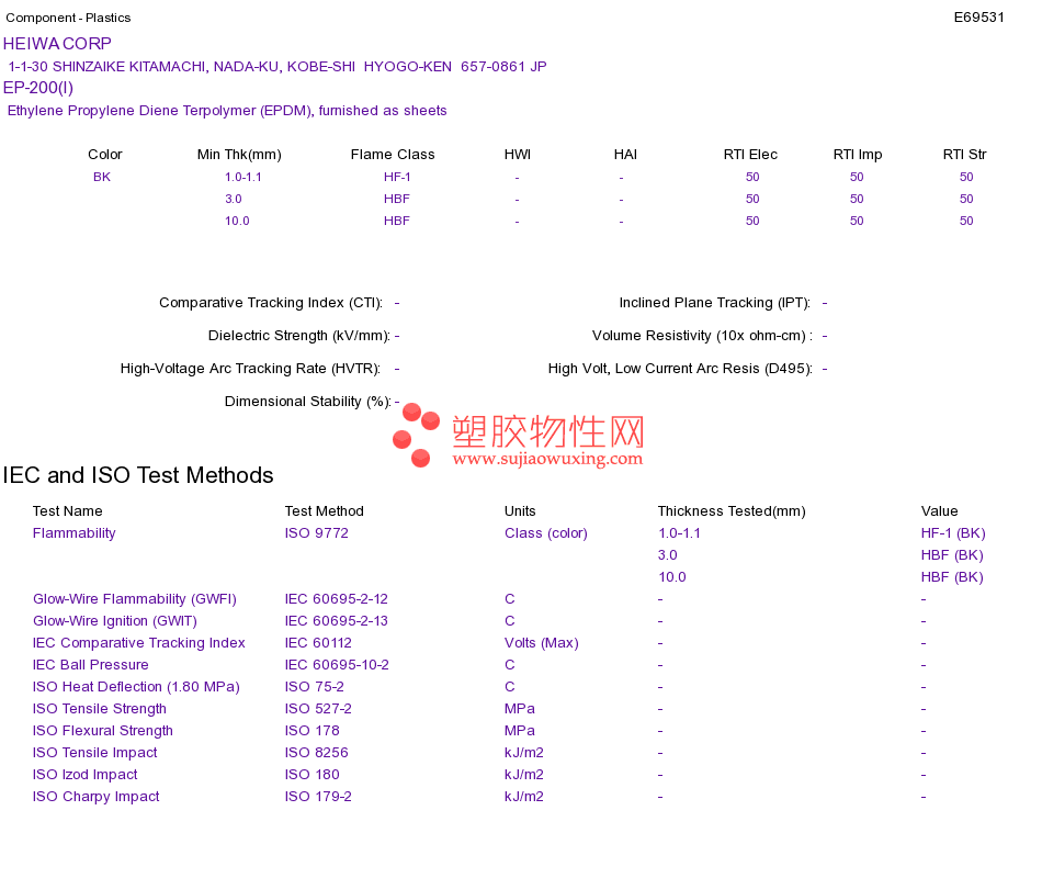 Ethylene Propylene Diene Terpolymer (EPDM) EP-200(l) UL黄卡