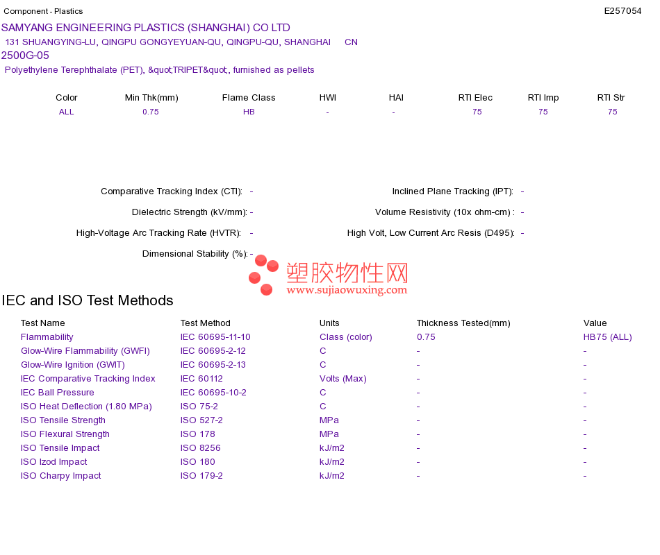 Polyethylene Terephthalate (PET) 2500G-05UL黄卡资料请登陆会员后查看,如需电子档资料,请联系客服! 赵生:手机13424755533;QQ:27660005