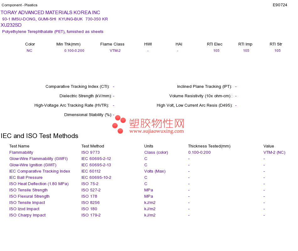Polyethylene Terephthalate (PET) XU232SDUL黄卡资料请登陆会员后查看,如需电子档资料,请联系客服! 赵生:手机13424755533;QQ:27660005