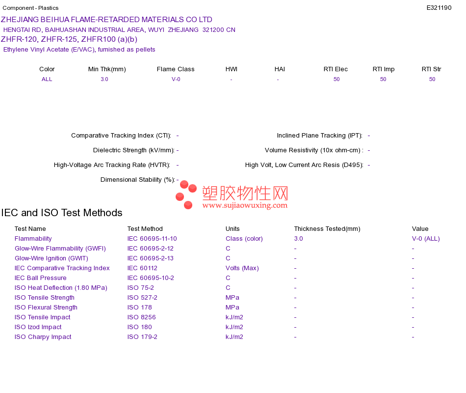 Ethylene Vinyl Acetate (E/VAC) ZHFR-120, ZHFR-125, ZHFR100 (a)(b)UL黄卡资料请登陆会员后查看,如需电子档资料,请联系客服! 赵生:手机13424755533;QQ:27660005