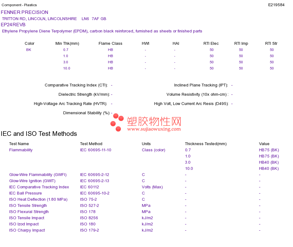 Ethylene Propylene Diene Terpolymer (EPDM) EP24REVB UL黄卡