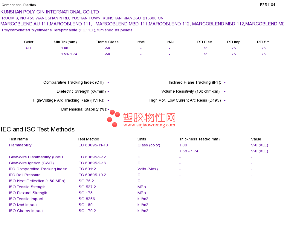 Polycarbonate/Polyethylene Terephthalate (PC/PET) MARCOBLEND AU 111,MARCOBLEND 111, MARCOBLEND MBD 111,MARCOBLEND 112, MARCOBLEND MBD 112,MARCOBLEND MD112UL黄卡资料请登陆会员后查看,如需电子档资料,请联系客服! 赵生:手机13424755533;QQ:27660005