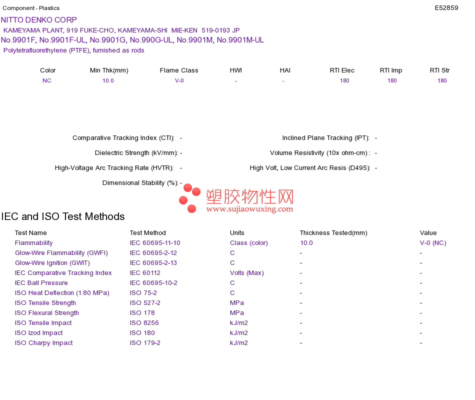 Polytetrafluorethylene (PTFE) No.9901F, No.9901F-UL, No.9901G, No.990G-UL, No.9901M, No.9901M-ULUL黄卡资料请登陆会员后查看,如需电子档资料,请联系客服! 赵生:手机13424755533;QQ:27660005