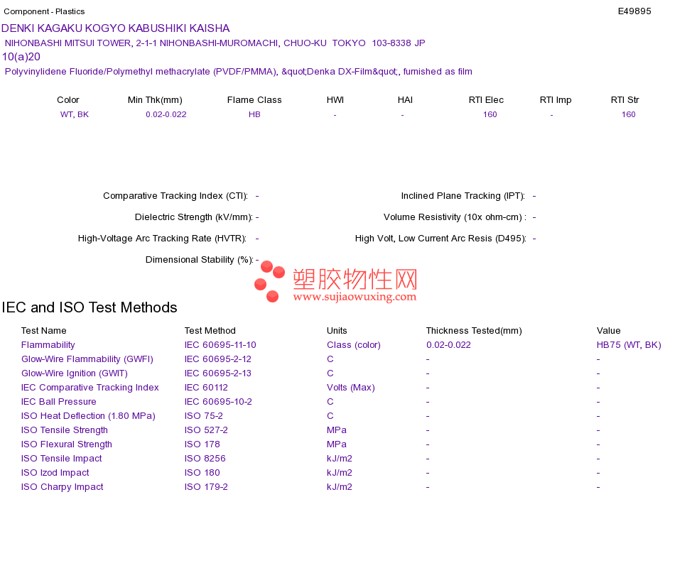 Polyvinylidene Fluoride/Polymethyl methacrylate (PVDF/PMMA) 10(a)20UL黄卡资料请登陆会员后查看,如需电子档资料,请联系客服! 赵生:手机13424755533;QQ:27660005