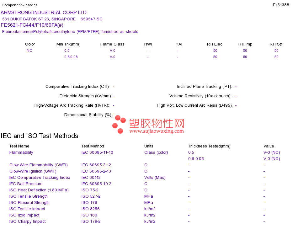 Flouroelastomer/Polytetrafluoroethylene (FPM/PTFE) FE5621-FC444/F10/60FA(#)UL黄卡资料请登陆会员后查看,如需电子档资料,请联系客服! 赵生:手机13424755533;QQ:27660005