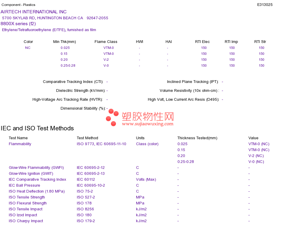 Ethylene/Tetrafluoroethylene (E/TFE) 8800X series (f2)UL黄卡资料请登陆会员后查看,如需电子档资料,请联系客服! 赵生:手机13424755533;QQ:27660005