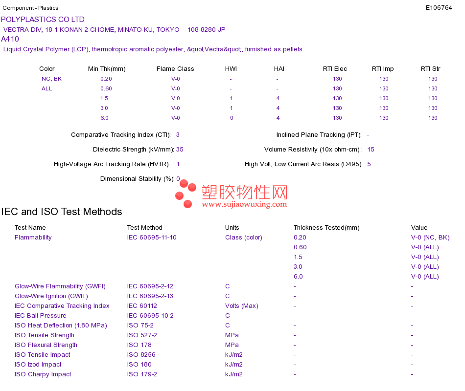 Liquid Crystal Polymer (LCP) A410UL黄卡资料请登陆会员后查看,如需电子档资料,请联系客服! 赵生:手机13424755533;QQ:27660005
