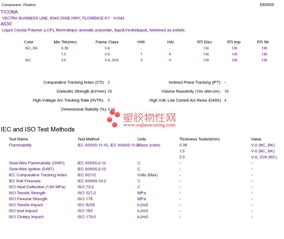 Liquid Crystal Polymer (LCP) A530UL黄卡资料请登陆会员后查看,如需电子档资料,请联系客服! 赵生:手机13424755533;QQ:27660005