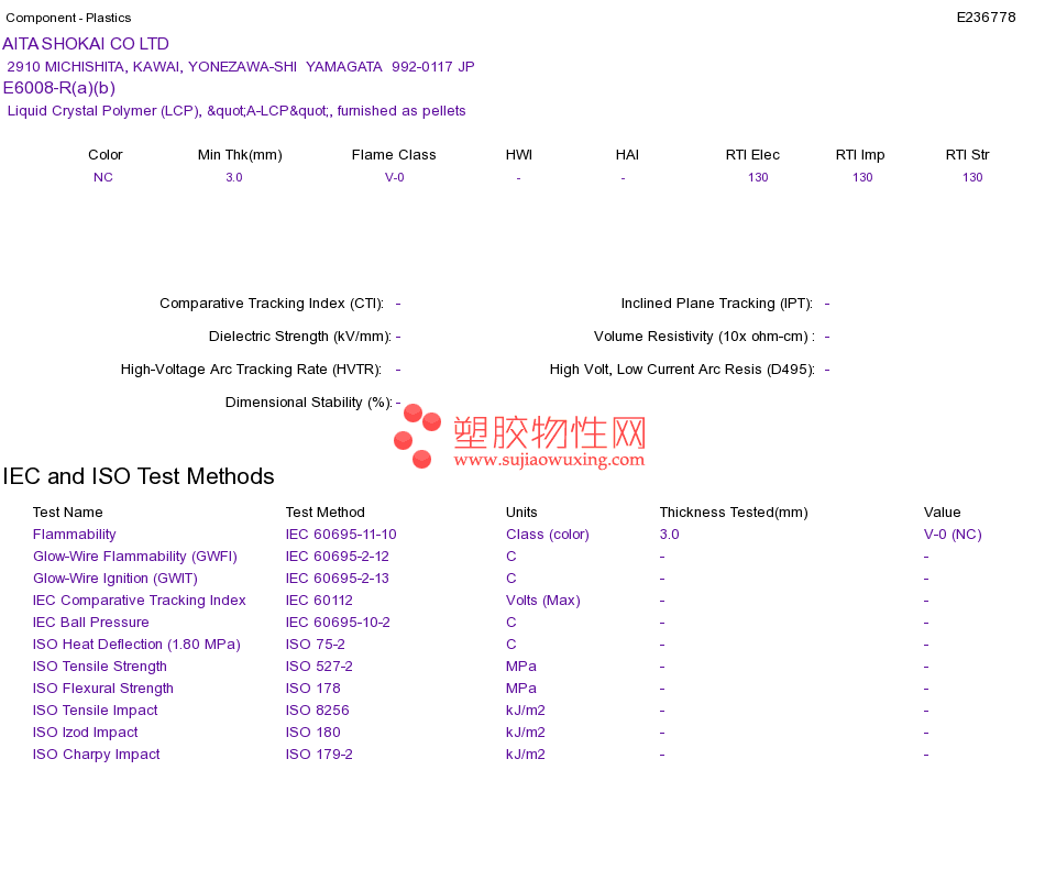 Liquid Crystal Polymer (LCP) E6008-R(a)(b)UL黄卡资料请登陆会员后查看,如需电子档资料,请联系客服! 赵生:手机13424755533;QQ:27660005