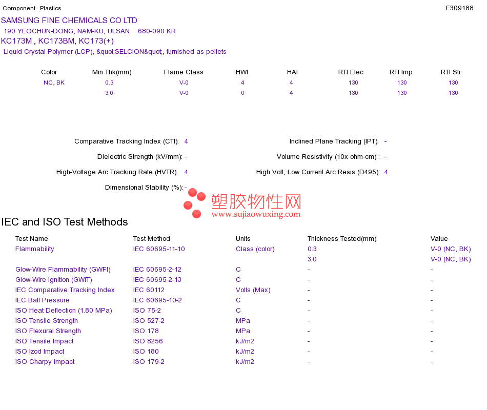 Liquid Crystal Polymer (LCP) KC173M , KC173BM, KC173(+) UL黄卡